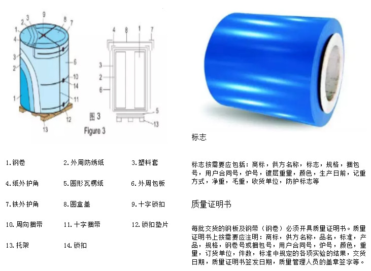 1、 宝钢彩涂卷为立式精包装,底部有木架固定,民营厂一般为卧式包装。2、 索要宝钢彩涂产品质量证明书,质保书中钢卷号,炉号,净重,锌层含量与彩涂卷标签对应,且仔细核对标签清晰度,看是否有撕毁过痕迹,包括钢卷内标签。