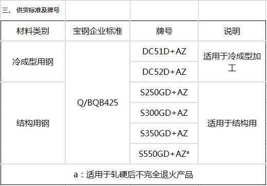 适用于结构用 S300GD+AZ S350GD+AZ S550GD+AZa a:适用于轧硬后不完全退火产品