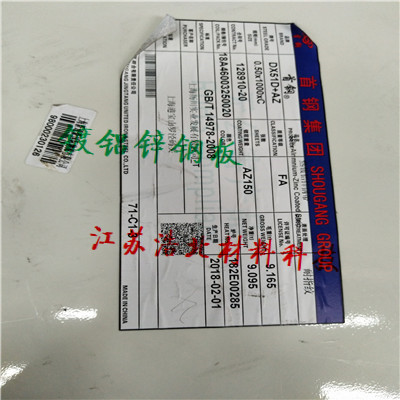 55%热浸铝锌合金产品,又称镀铝锌板、敷铝锌板&覆铝锌板:台湾烨辉AZM150环保耐指纹镀铝锌冲压性能好DX51D-54D,通过第三方SGS环保6项打包ROHS检测和欧盟REACH检测,盐雾试验