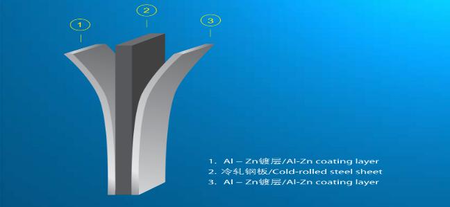 镀铝锌钢板是连续熔融镀层工艺。55%铝锌合金镀层的镀铝锌钢板当双面暴露于同样的环境时与相同厚度的镀锌钢板相比具有更优越的耐腐蚀性。55%铝锌合金镀层的镀铝锌钢板不仅具有良好的耐腐蚀性外,更具有优秀的附着力和柔性。