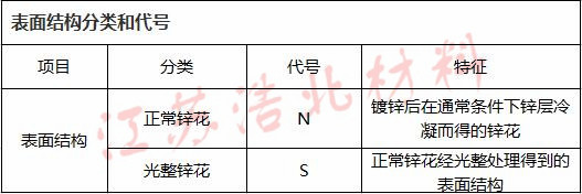 镀铝锌钢板的表面结构: EN10215分类 特点 说明 A 正常晶花 镀层自然再结晶形成 B 表皮光轧 经过表皮光轧加工,适于涂漆
