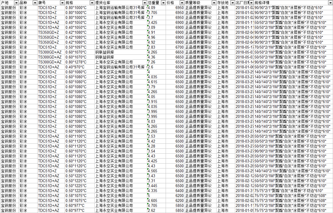 宝钢股份彩涂板白灰现货资源,需要的请电联021-36212197 www.hb-kj.cn