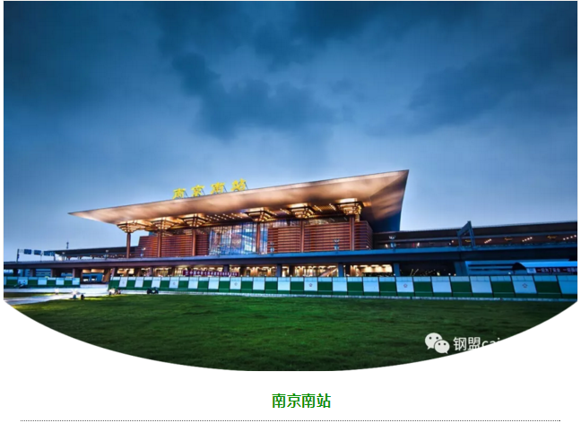 南京南站位于南京市南部新城核心区,是上海铁路局下辖的特等站,连接8条高等级铁路的国家铁道枢纽站。为京沪高速铁路五大始发站之一,是华东地区最大的交通枢纽,南京南站总建筑面积约45.8万平方米,其中主站房面积达28.15万平方米,是亚洲最大的火车站。南京火车站采用了马钢厚度为0.5mm的黑棕PE彩涂板材料。